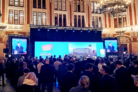 Le 8 janvier dernier, le Palais de la Bourse a accueilli « Le talk-show du futur », une édition inédite des vœux des forces économiques. Pour cette année 2026, la MEL s'est associée à cet événement majeur pour réaffirmer son rôle de moteur de la transformation économique de son territoire et présenter son action au service de l'innovation.